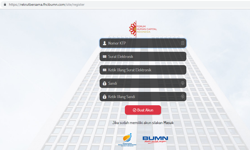 Buat akun pada website perekrutan bersama bumn di rekrutbersama.fhcibumn.com.
