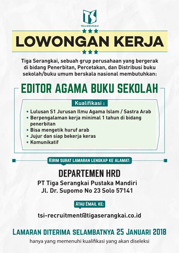 Lowongan Kerja Editor Buku Islam. ● pengetahuan seputar kbbi, tesaurus dan puebi. Dapatkan info lowongan baru untuk pencarian ini.