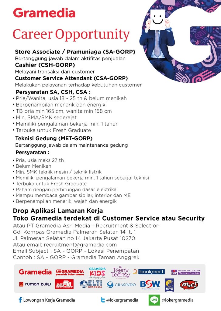 Lowongan Kerja Gramedia Tangerang. Kerja di tangerang cari di anatara 18.100+ lowongan kerja terbaru pekerjaan penuh waktu, sementara dan paruh waktu langganan informasi lowongan kerja lowongan kerja dari semua perusahaan dan situs pencarian kerja top di tangerang mulailah karir baru anda sekarang! Tidak hanya di indonesia toko buku gramedia juga berekspansi di negara tetangga, malaysia.