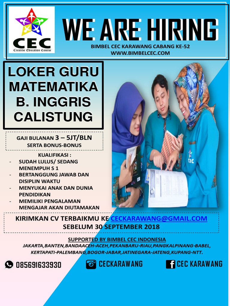 Lowongan Kerja Guru Calistung. Guru bahasa indonesia lowongan kerja guru smp hikmah padang panjang juni 2020. Lngkar selatan ciracas serang banten, saat ini membuka lowongan kerja, dibawah ini adalah posisi jabatan yang tersedia bagi anda para pencari kerja yang tertarik untuk mengembangkan karir dengan kualifikasi sebagai berikut :