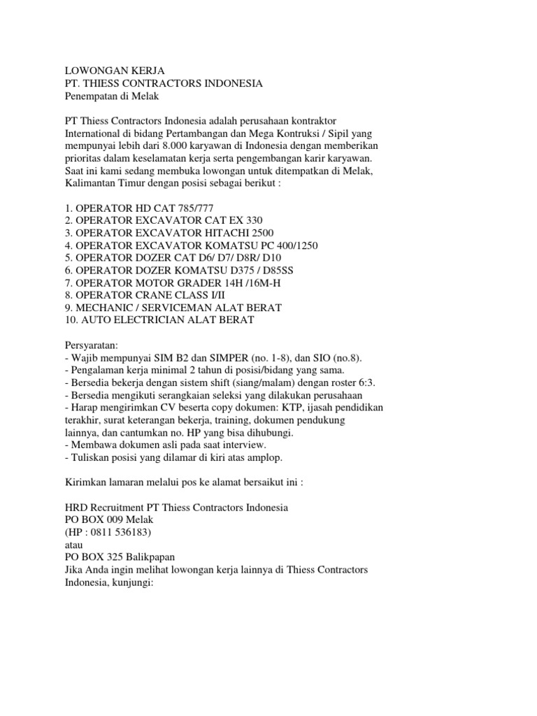 Info lowongan kerja terbaru seluruh kalimantan. Info lowongan kerja terbaru 2020 informasi lowongan kerja tahun 2020 di bank bumn cpns migas kai telkom pertambangan cs teller untuk lulusan sma smk man d3 s1 s2 terbaru. Lowongan kerja kaltim thiess indonesia terbaru juni 2021. Tersedia lowongan kerja transpotasi & logistik di jobindo.com, silahkan mendaftar segera kirim lamaran anda untuk lowongan pekerjaan transpotasi dapatkan banyak lowongan kerja di www.infokerja.net klik disini.