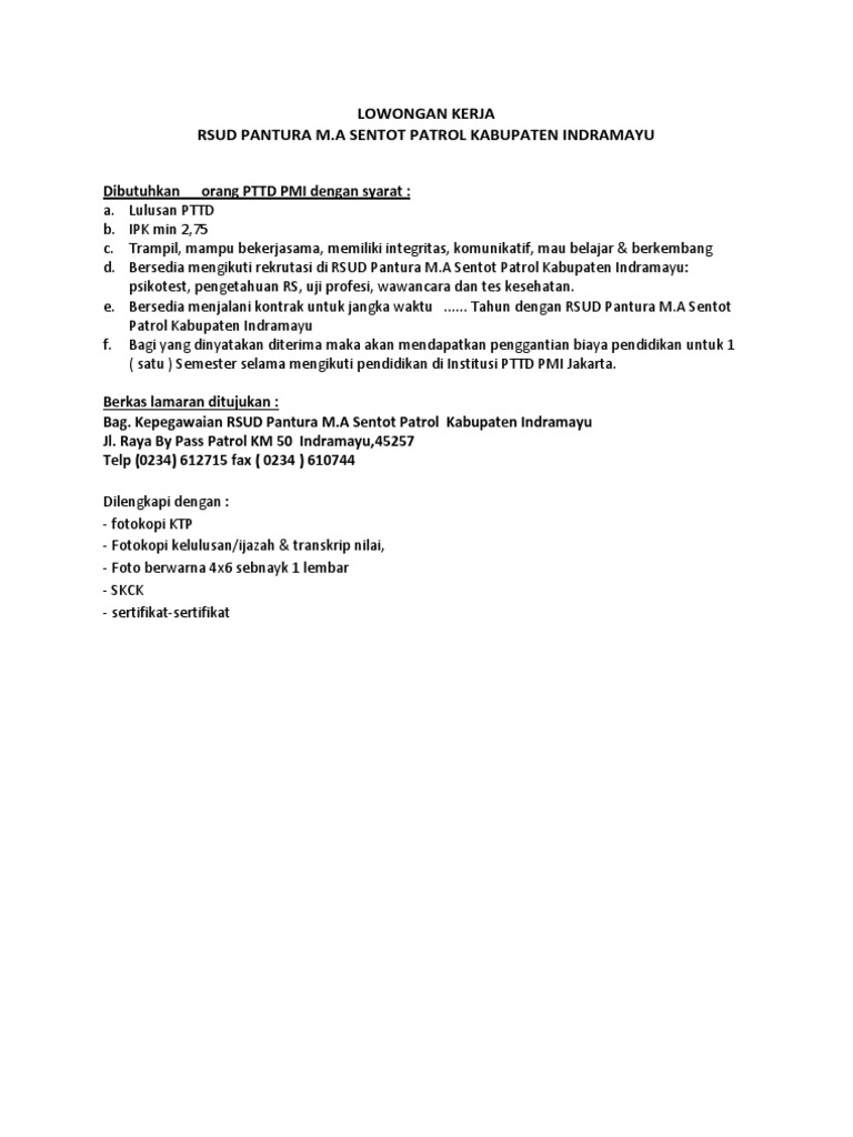 Lowongan Kerja Rs Indramayu. Setiap tahun pencari loker semakin bertambah. Rumah sakit mm indramayu mencari tenaga kerja yang handal dan menguasai bidangnya untuk ditempatkan sebagai