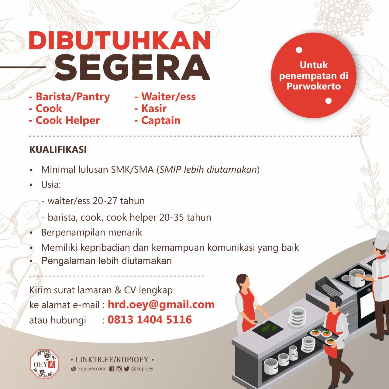 Informasi lowongan kerja lulusan √sd, √smp, √sma, √smk, √d3, √s1, √s2, √s3 untuk daerah purwokerto, banyumas, purbalingga, cilacap temukan informasi lowongan kerja terbaru di wilayah purwokerto, banyumas, purbalingga, banjarnegara, cilacap, kebumen, brebes, pemalang. Alamat abata digital printing purwokerto. Pt kimia farma diagnostika adalah anak perusahaan dari pt kimia farma apotek, yang merupakan jaringan pelayanan laboratorium klinik terbaik di indonesia. Dapur lindawaty cakery membutuhkan seorang waiters tanggung jawab pekerjaan.